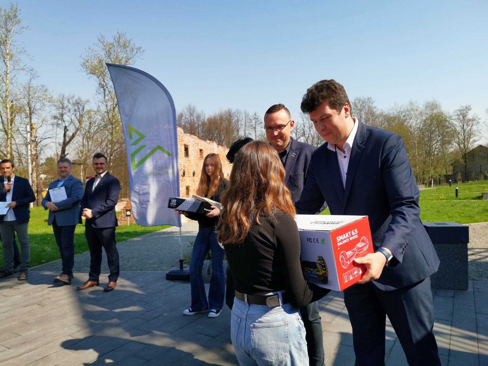 Dla tych, którzy wykazali się najciekawszymi pracami i okazali się najbardziej kreatywni przekazując innym swoją pracą największą dawkę inspiracji, skłaniającą do zainteresowania się tematem zmian klimatycznych, przewidziano atrakcyjne nagrody. Liczył się przede wszystkim pomysł, zainteresowanie tematem i szeroko pojęte walory edukacyjno-artystyczne. Narada komisji konkursowej, w skład której wchodzili przedstawiciele Wydziału Ochrony Środowiska, Wydziału Promocji i CEE, odbyła się w dniu 13 kwietnia br. Do jury konkursowego zaproszono również przedstawiciela Zespołu Obsługi Placówek Oświatowych w Czechowicach-Dziedzicach. Zwycięzcy otrzymali rowery górskie, nagrodą za zajęcie drugich miejsc były deskorolki elektryczne, a trzecie miejsca nagrodzono rolkami. Nagrody i pamiątkowe dyplomy oraz upominki wręczali Zastępca Burmistrza Czechowic-Dziedzic Maciej Kołoczek i Przewodniczący komisji konkursowej Przemysław Szwed, zastępca naczelnika CEE.